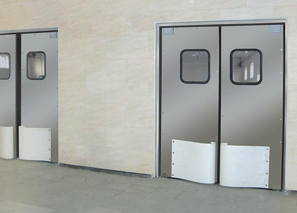 不锈钢自由门:门扇40mm厚,防撞PE板8mm,透视窗,轴承重型铰链、耐撞击不小于100万次